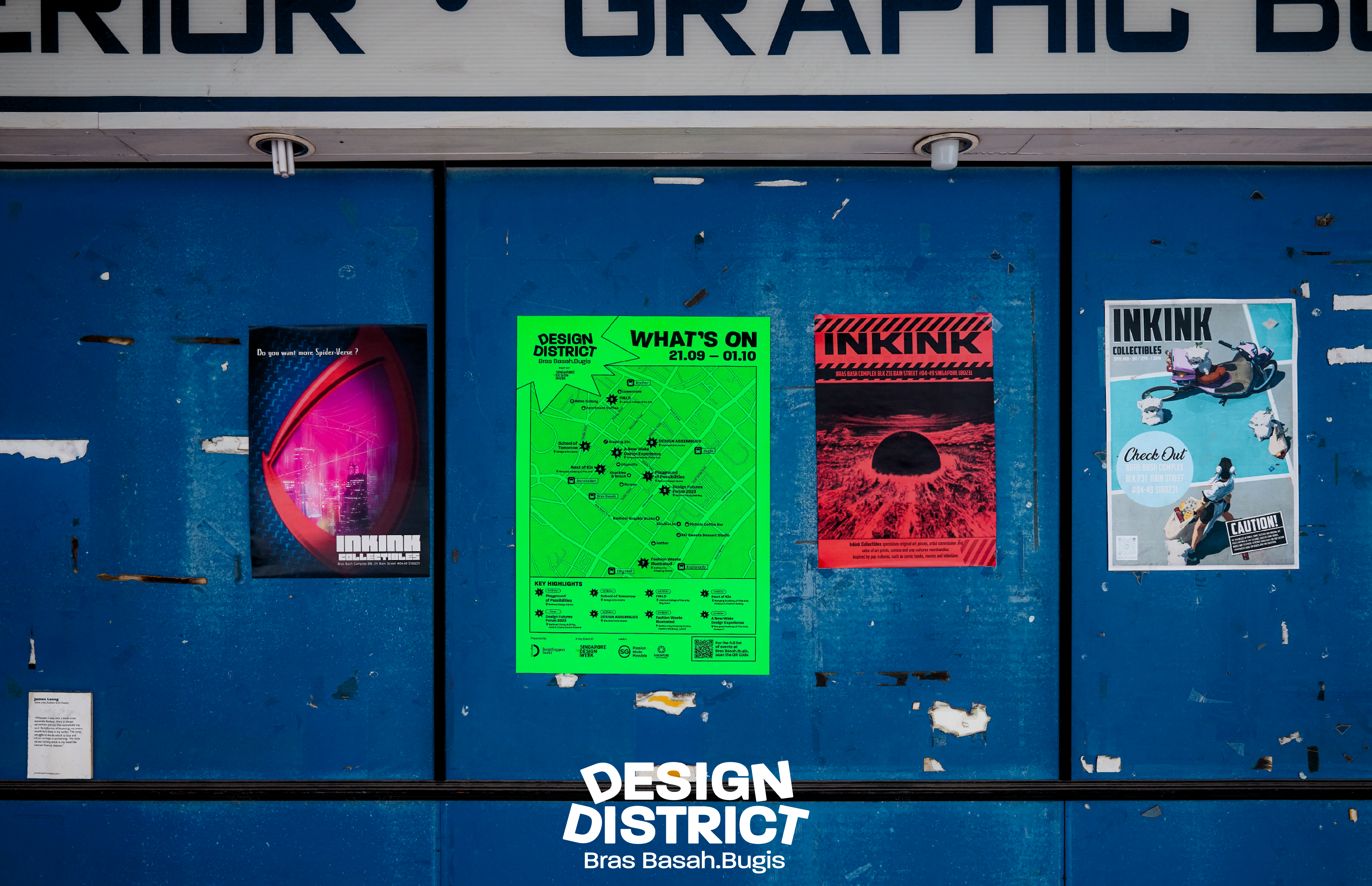 Design District: Bras Basah Bugis is a district activation during the 2023 edition of Singapore Design Week. It seeks to showcase the design impact within the Bras basah Bugis district through a distinct Wayfinding System which features shop badges, decals, maps & district characters which also functions as wayfinding directional pointers.