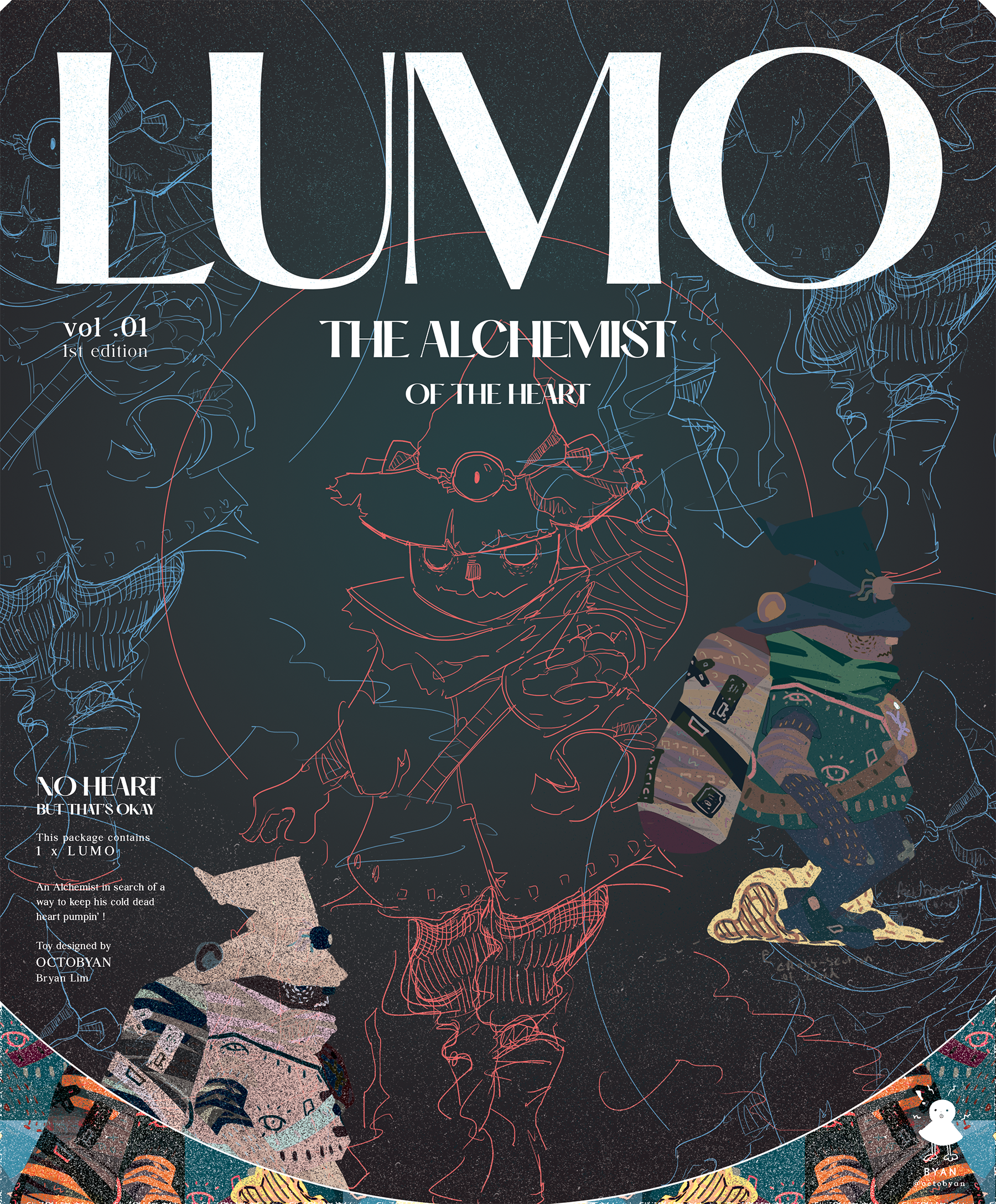 Independently Designed and co-produced with FLABSLAB (a local designer toy production studio) a resin-cast designer toy titled Lumo. LUMO is an alchemist without a heart, designed live on the spot during a live character illustration showdown in Orchard as part of NOISE Singapore's Character Clash.